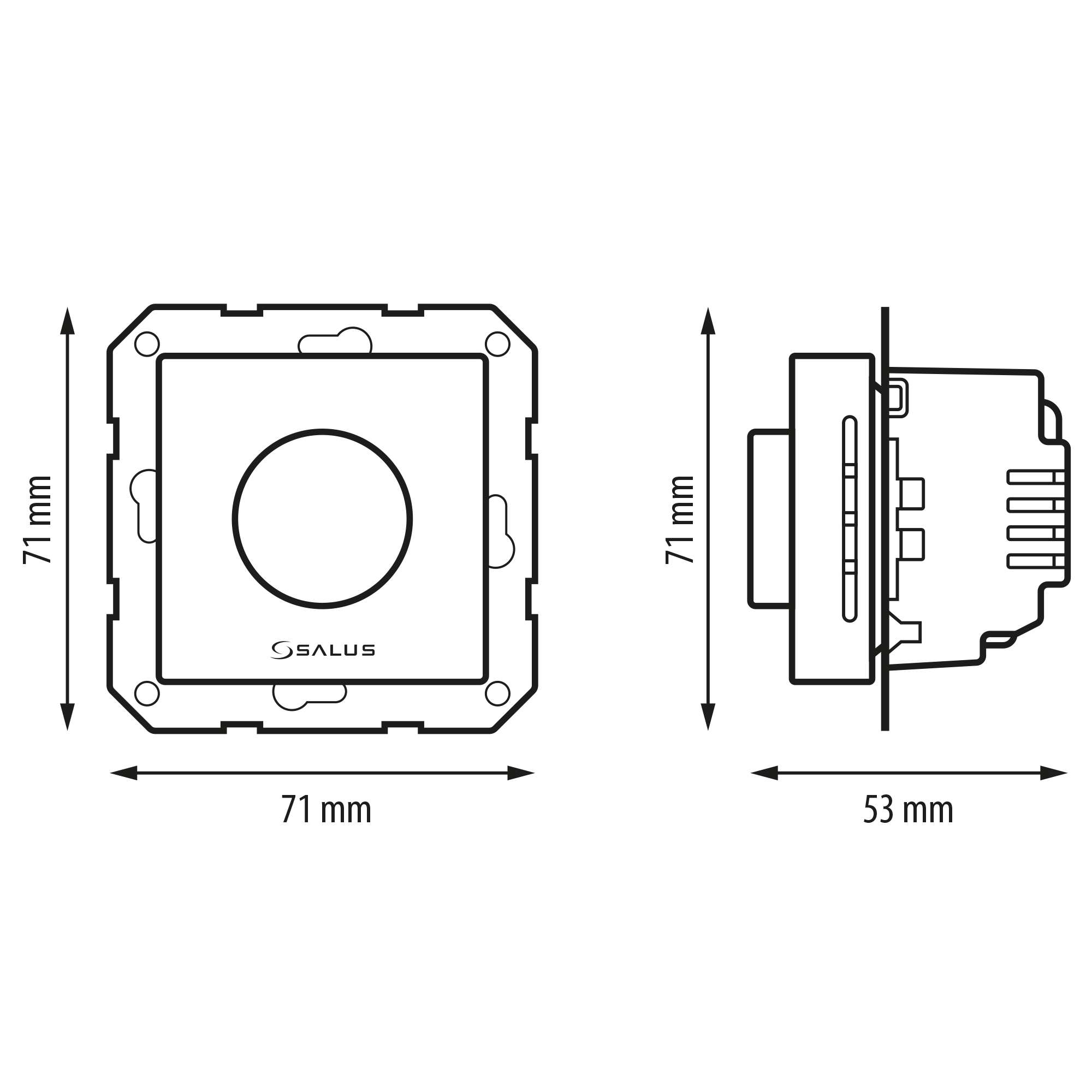 SALUS BTR230 spojuje čistý design, snadné ovládání a funkce pro úsporné řízení teploty. Určený pro montáž do rámečku 55×55 mm.